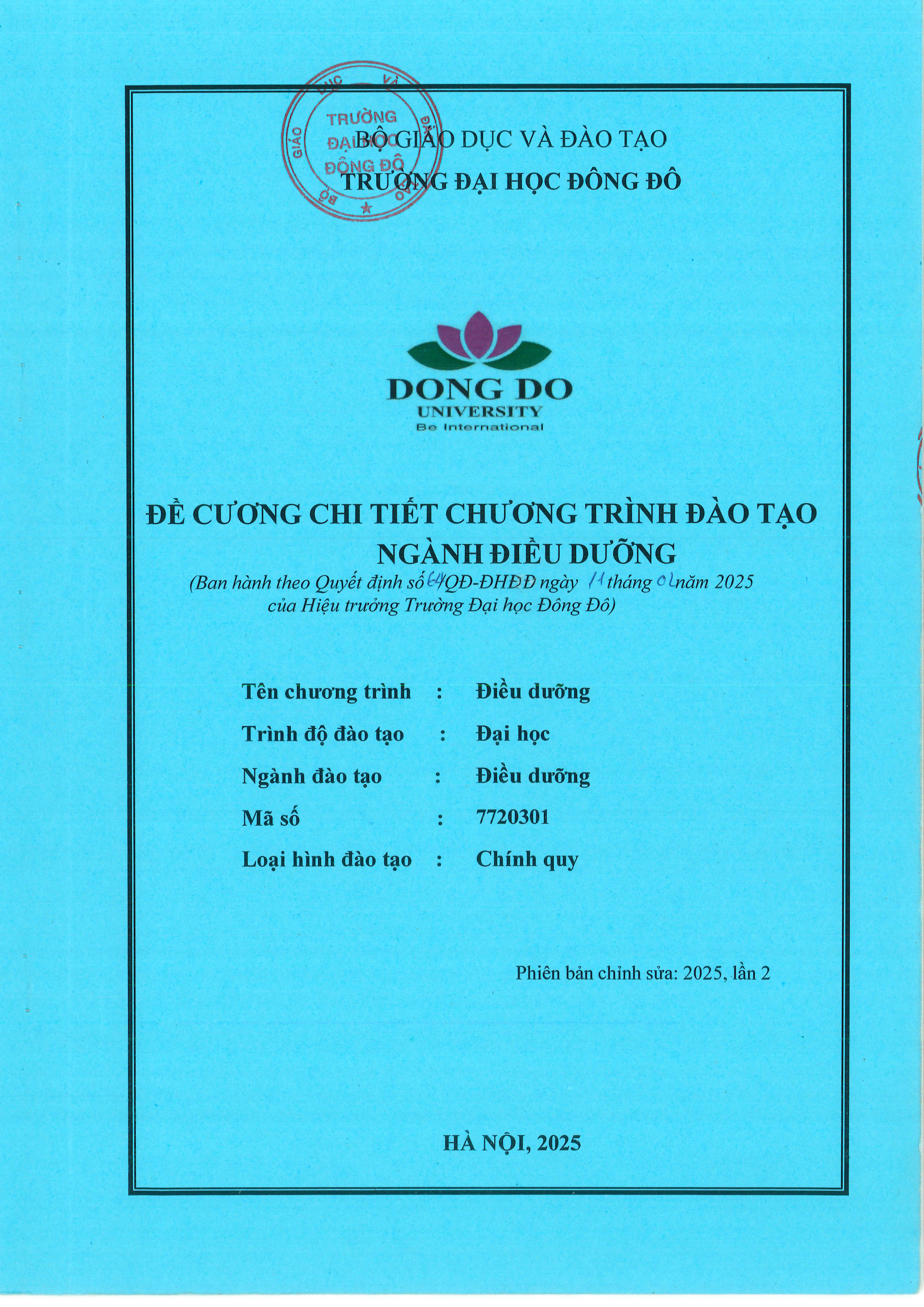 Khoa Điều Dưỡng QĐ số 548 ngày 16/06/2021 về việc ban hành Chương trình đào tạo trình độ đại học ngành Điều dưỡng