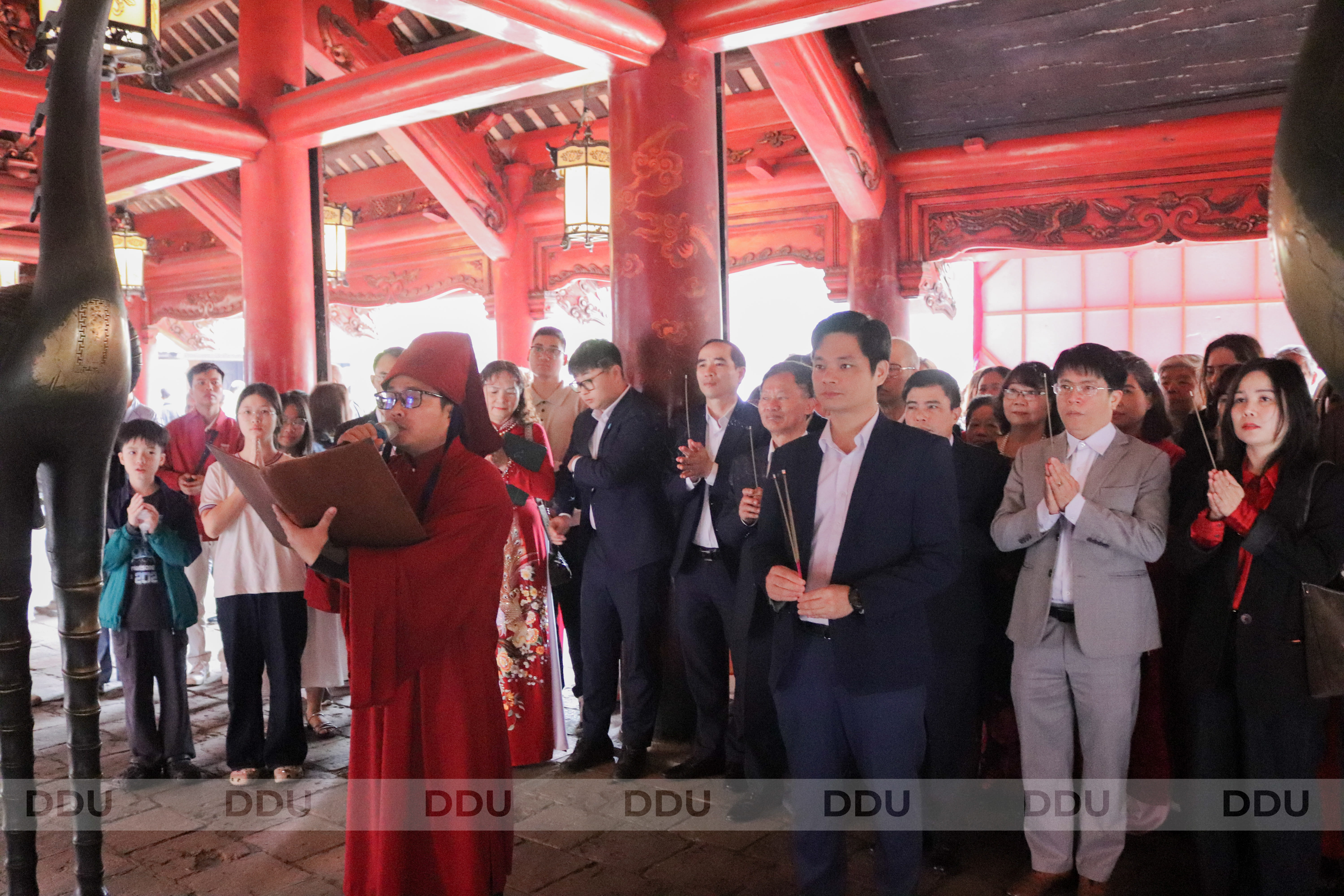 Lễ dâng hương được diễn ra trong không khí trang nghiêm và thành kính, tại điện Đại Thành, trước anh linh của các bậc Tiên thánh, Tiên hiền, tập thể cán bộ, giảng viên Nhà trường đã bày tỏ lòng biết ơn sâu sắc đối với những người có công khai sáng nền giáo dục nước nhà; đồng thời gửi gắm mong ước về một năm 2026 bình an, tập thể Nhà trường luôn vững mạnh, công tác đào tạo, nghiên cứu khoa học gặt hái nhiều thành công, nghiên cứu sinh, học viên và sinh viên sẽ đạt được những thành tích rực rỡ trong học tập, rèn luyện.