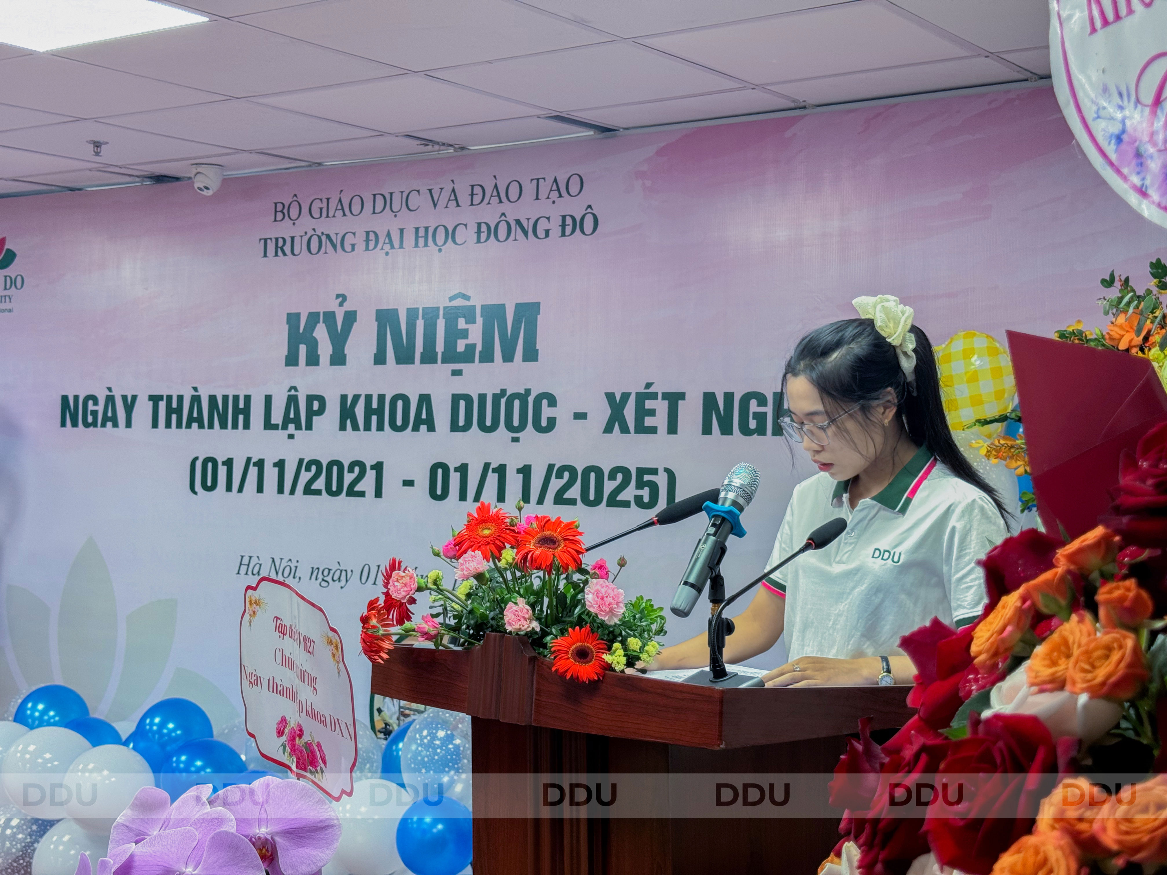 Sáng ngày 01/11/2025, tại Hội trường tầng 5 – Trường Đại học Đông Đô, Khoa Dược – Xét nghiệm đã long trọng tổ chức Lễ kỷ niệm 4 năm ngày thành lập (01/11/2021 – 01/11/2025). Buổi lễ diễn ra trong bầu không khí trang trọng, ấm áp và tràn đầy cảm xúc, là dịp để thầy và trò Khoa Dược – Xét nghiệm cùng nhau nhìn lại chặng đường hình thành, phát triển và trưởng thành suốt bốn năm qua, đồng thời tri ân sâu sắc đến các thế hệ lãnh đạo, giảng viên và sinh viên đã không ngừng nỗ lực, cống hiến, góp phần làm nên một tập thể đoàn kết – nhân ái – sáng tạo – bền vững.