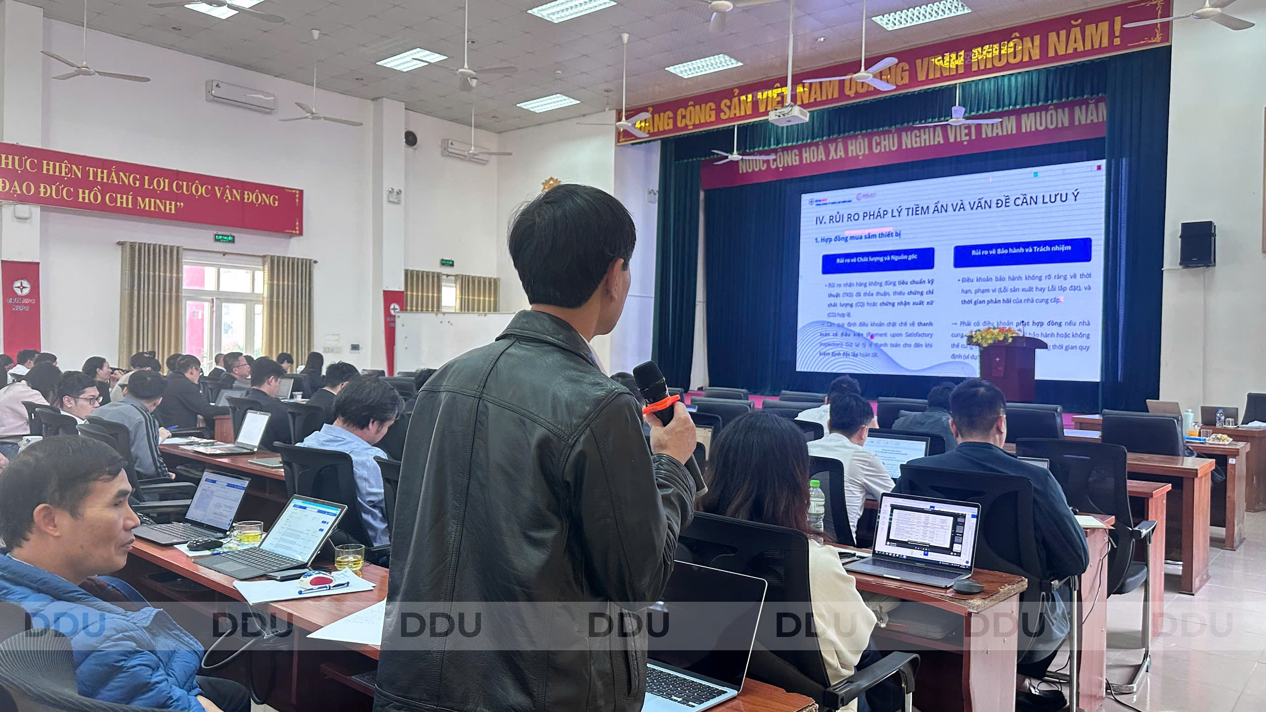 1. Nắm vững khung pháp lý giao thoa - Chìa khóa "Phòng ngừa từ gốc" Thay vì tư duy xử lý tranh chấp khi sự việc đã rồi, giảng viên đã hướng dẫn học viên cách hệ thống hóa mối quan hệ phức tạp giữa Luật Thương mại, Luật Xây dựng, Luật Điện lực và các quy chế tài chính nội bộ. Điều này giúp cán bộ EVNNPC: