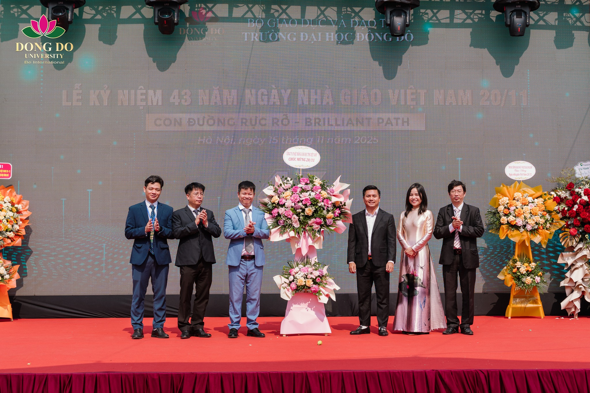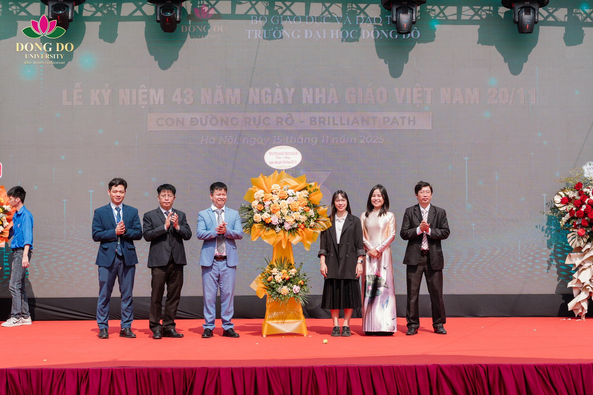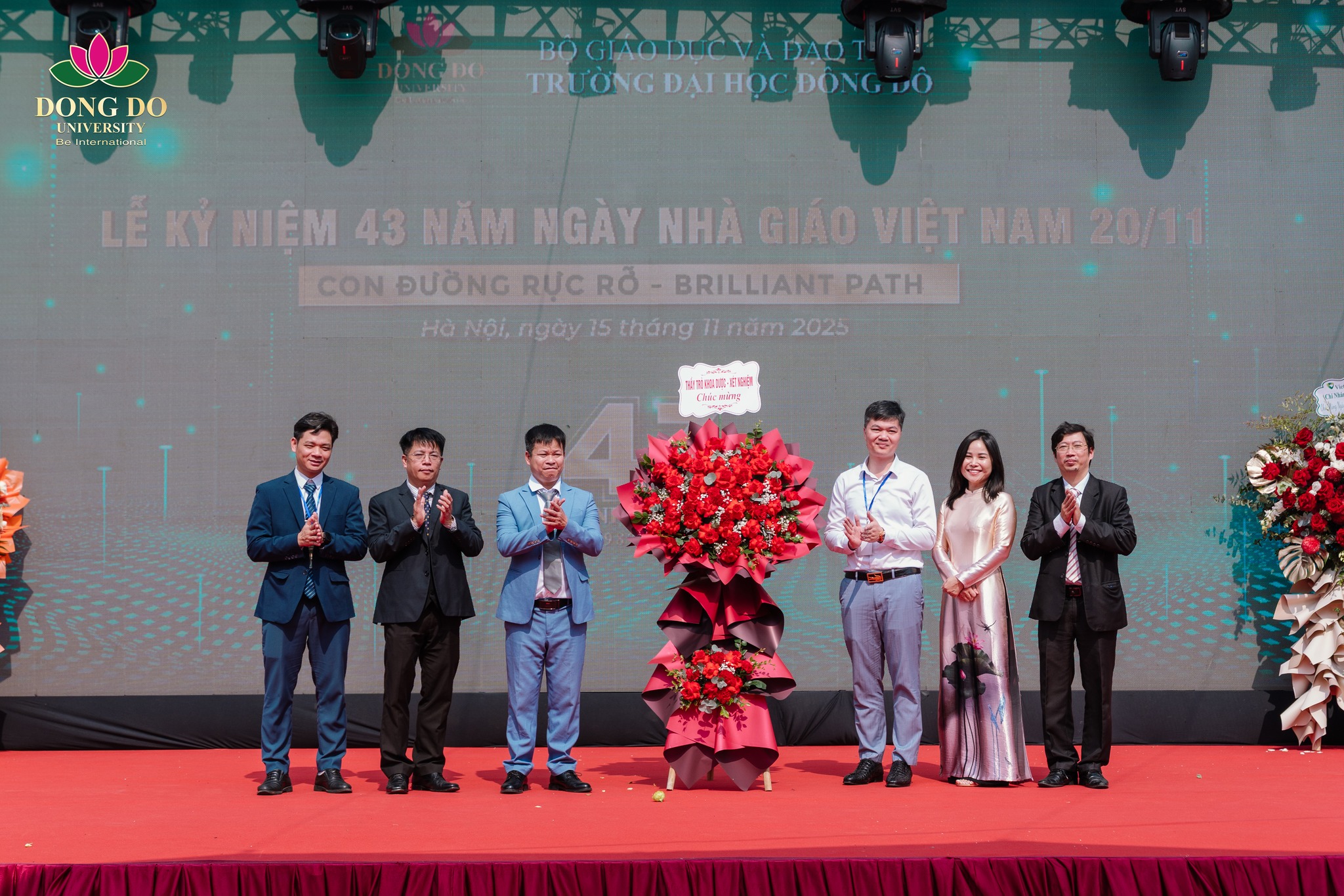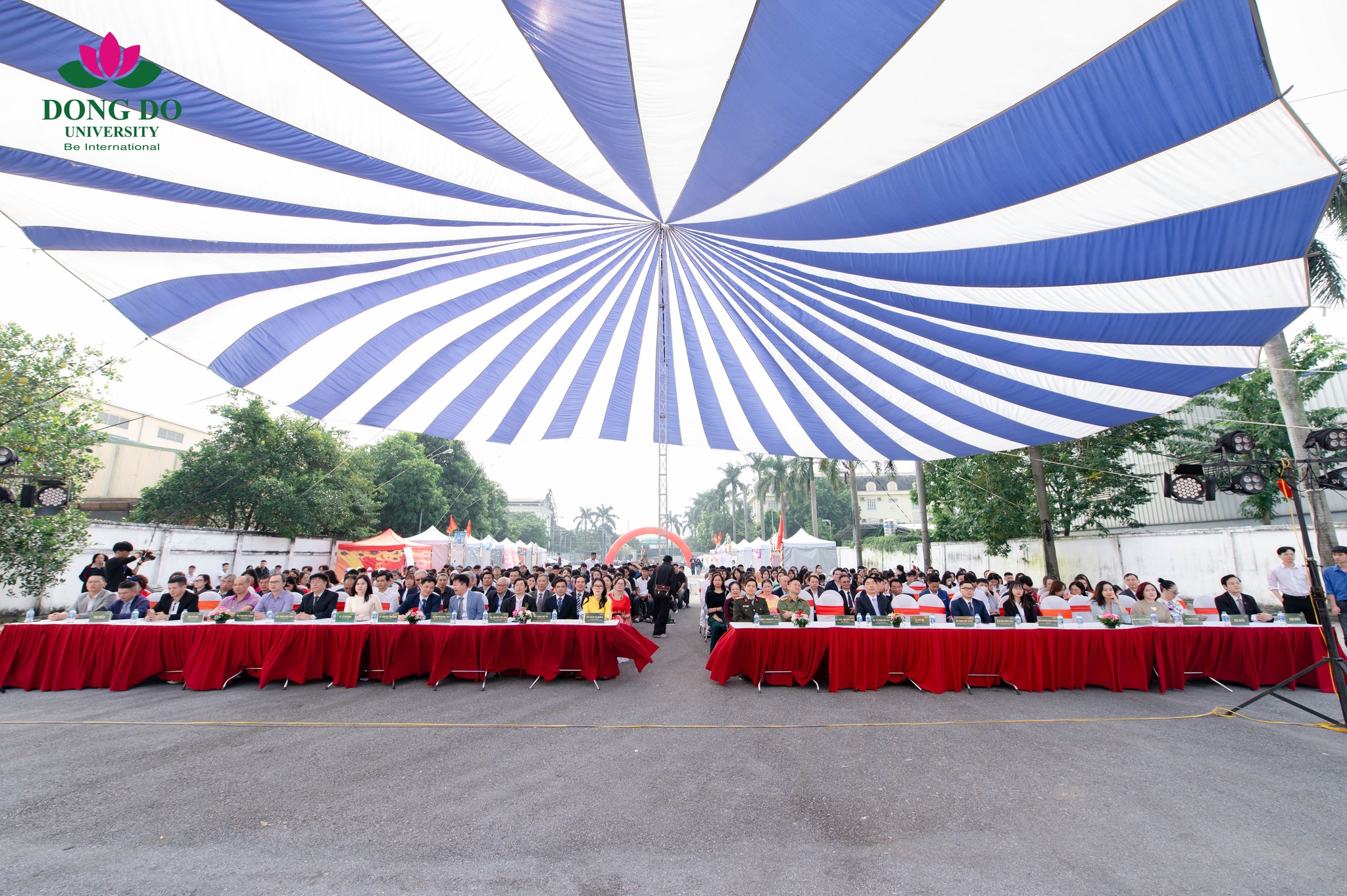 Buổi lễ có sự tham dự của ThS. Trần Thị Hương - Đại diện nhà đầu tư, Phó Chủ tịch Hội đồng trường; ThS. Nguyễn Thế Sơn - Phó Chủ tịch Hội đồng trường, Phó Hiệu trưởng; Đồng Chí Hoàng Đức Hà - Phó Bí thư Đảng ủy, TS. Nguyễn Đình Tân - Phó Hiệu trưởng phụ trách trường; TS. Lê Thị Dung - Phó Hiệu trưởng; TS. Nguyễn Anh Tuấn - Phó Hiệu trưởng và ThS. Trần Khắc Hưng - Phó Hiệu trưởng cùng các quý thầy cô giảng viên các khoa, đại diện doanh nghiệp, đối tác chiến lược và đông đảo sinh viên toàn trường. Đặc biệt hơn cả, Nhà trường vinh dự đón tiếp hai thầy là những người sáng lập Trường Đại học Đông Đô – những nhân chứng của hành trình hình thành và phát triển suốt hơn ba thập kỷ của trường: GS.TSKH Trần Hữu Phát, Thành viên sáng lập, nguyên Chủ tịch Hội đồng Quản trị; GS.TS Phan Văn Hạp, Thành viên sáng lập, nguyên Hiệu trưởng. Sự hiện diện của hai thầy tại buổi lễ mang ý nghĩa biểu tượng, gợi nhắc về những giá trị nền tảng mà Nhà trường luôn kế thừa và phát huy.