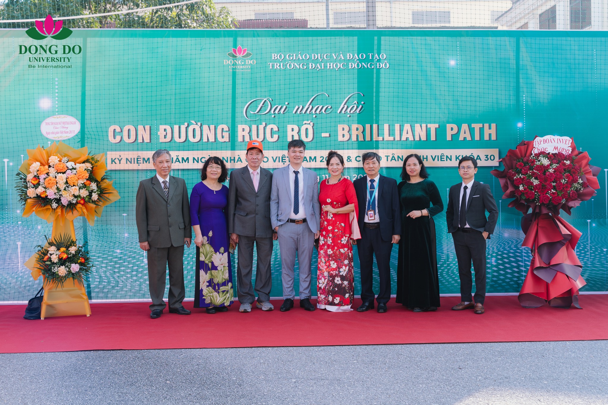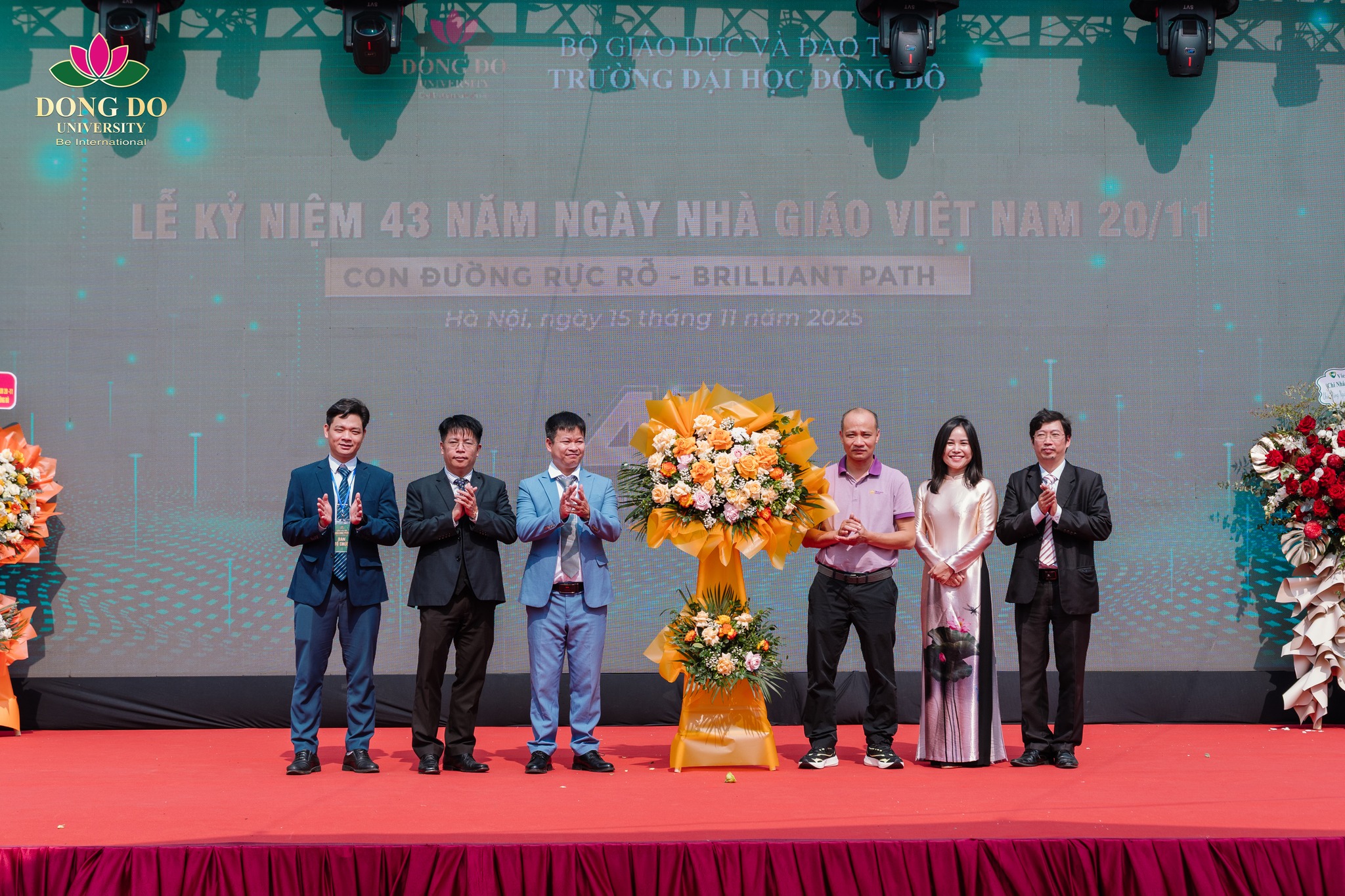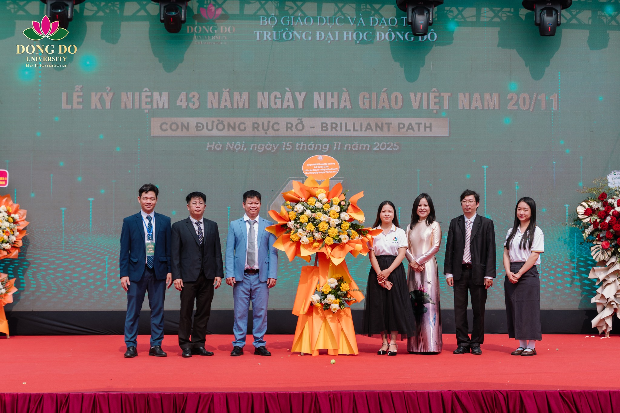 Buổi lễ có sự tham dự của ThS. Trần Thị Hương - Đại diện nhà đầu tư, Phó Chủ tịch Hội đồng trường; ThS. Nguyễn Thế Sơn - Phó Chủ tịch Hội đồng trường, Phó Hiệu trưởng; Đồng Chí Hoàng Đức Hà - Phó Bí thư Đảng ủy, TS. Nguyễn Đình Tân - Phó Hiệu trưởng phụ trách trường; TS. Lê Thị Dung - Phó Hiệu trưởng; TS. Nguyễn Anh Tuấn - Phó Hiệu trưởng và ThS. Trần Khắc Hưng - Phó Hiệu trưởng cùng các quý thầy cô giảng viên các khoa, đại diện doanh nghiệp, đối tác chiến lược và đông đảo sinh viên toàn trường. Đặc biệt hơn cả, Nhà trường vinh dự đón tiếp hai thầy là những người sáng lập Trường Đại học Đông Đô – những nhân chứng của hành trình hình thành và phát triển suốt hơn ba thập kỷ của trường: GS.TSKH Trần Hữu Phát, Thành viên sáng lập, nguyên Chủ tịch Hội đồng Quản trị; GS.TS Phan Văn Hạp, Thành viên sáng lập, nguyên Hiệu trưởng. Sự hiện diện của hai thầy tại buổi lễ mang ý nghĩa biểu tượng, gợi nhắc về những giá trị nền tảng mà Nhà trường luôn kế thừa và phát huy.