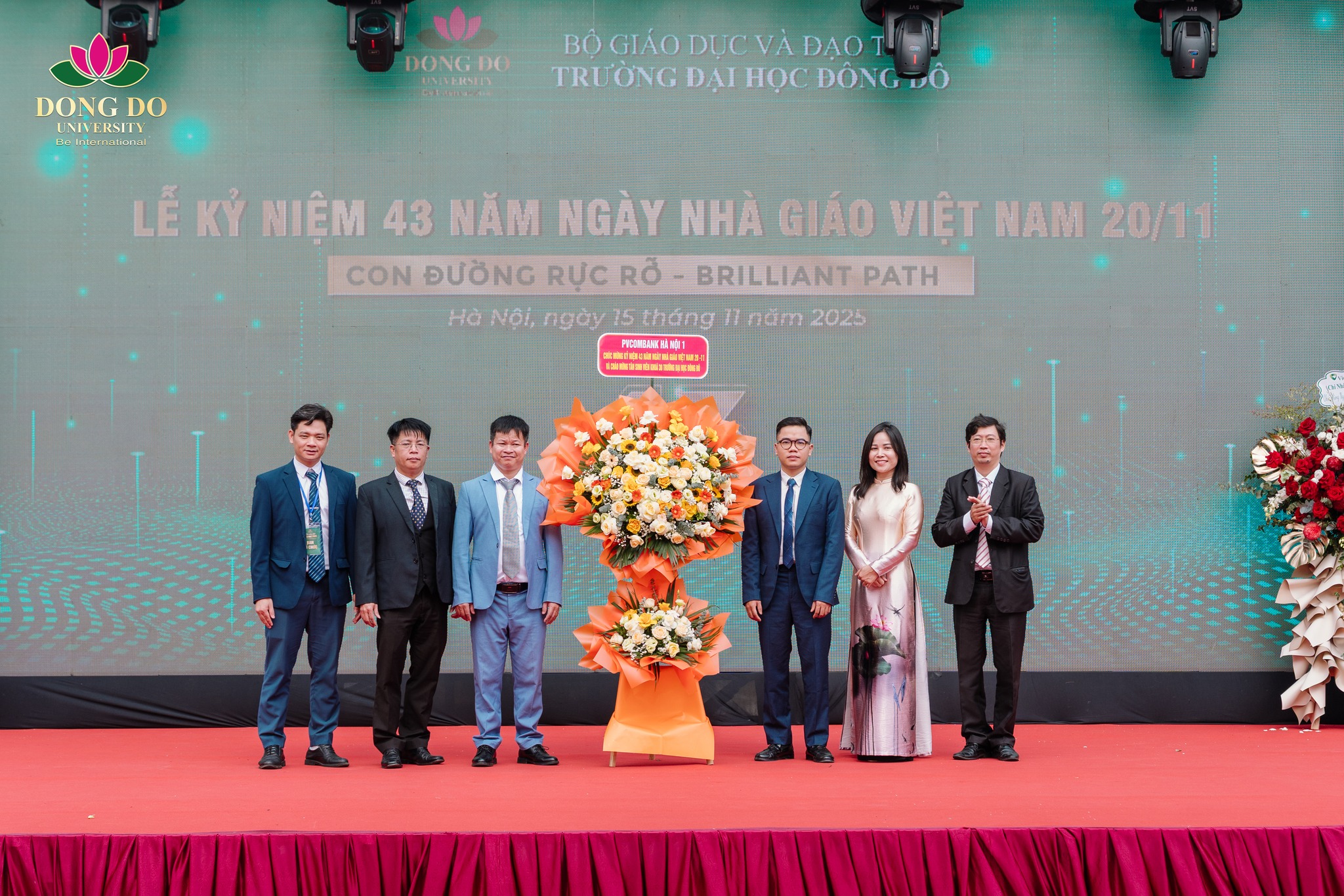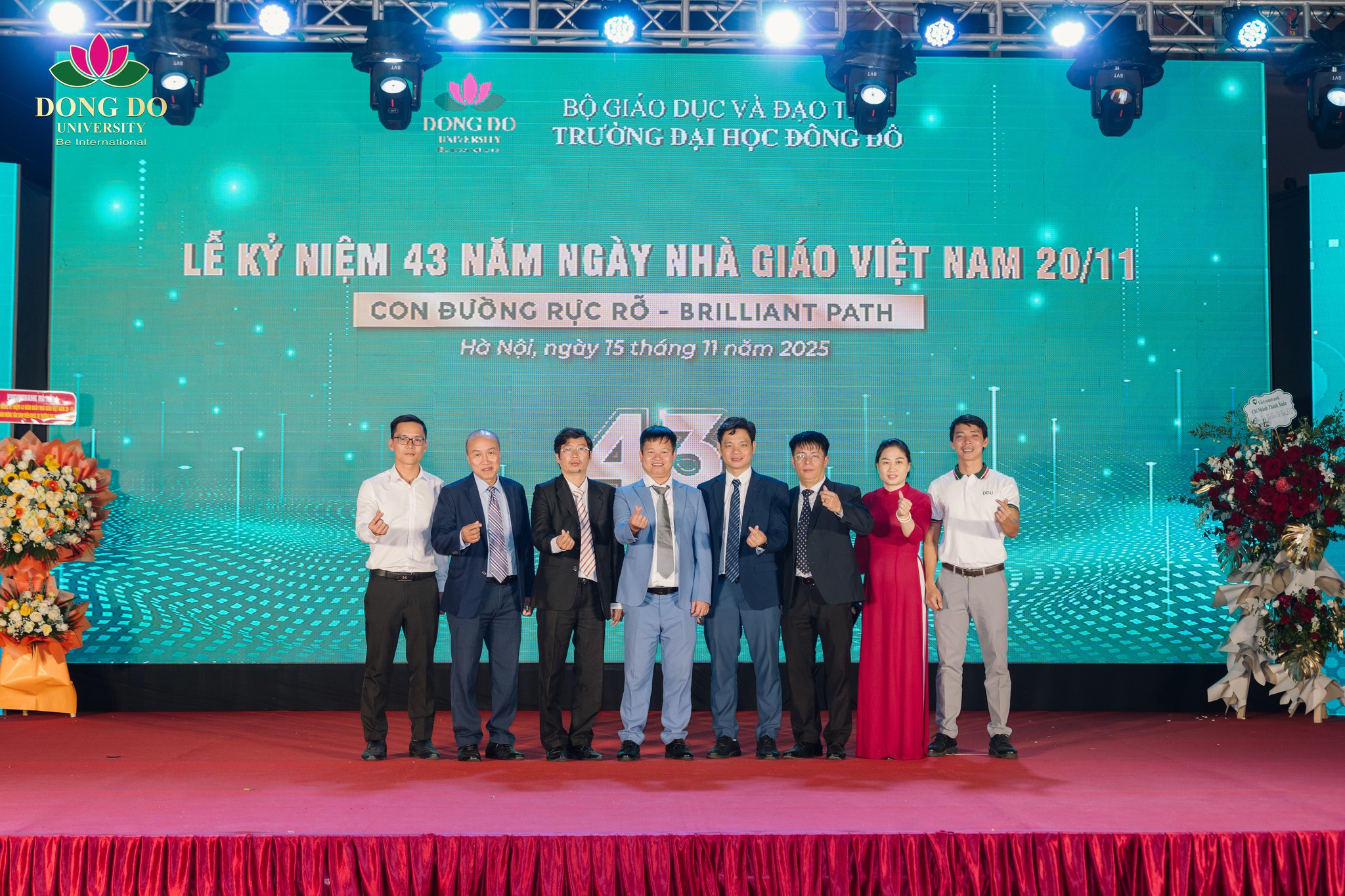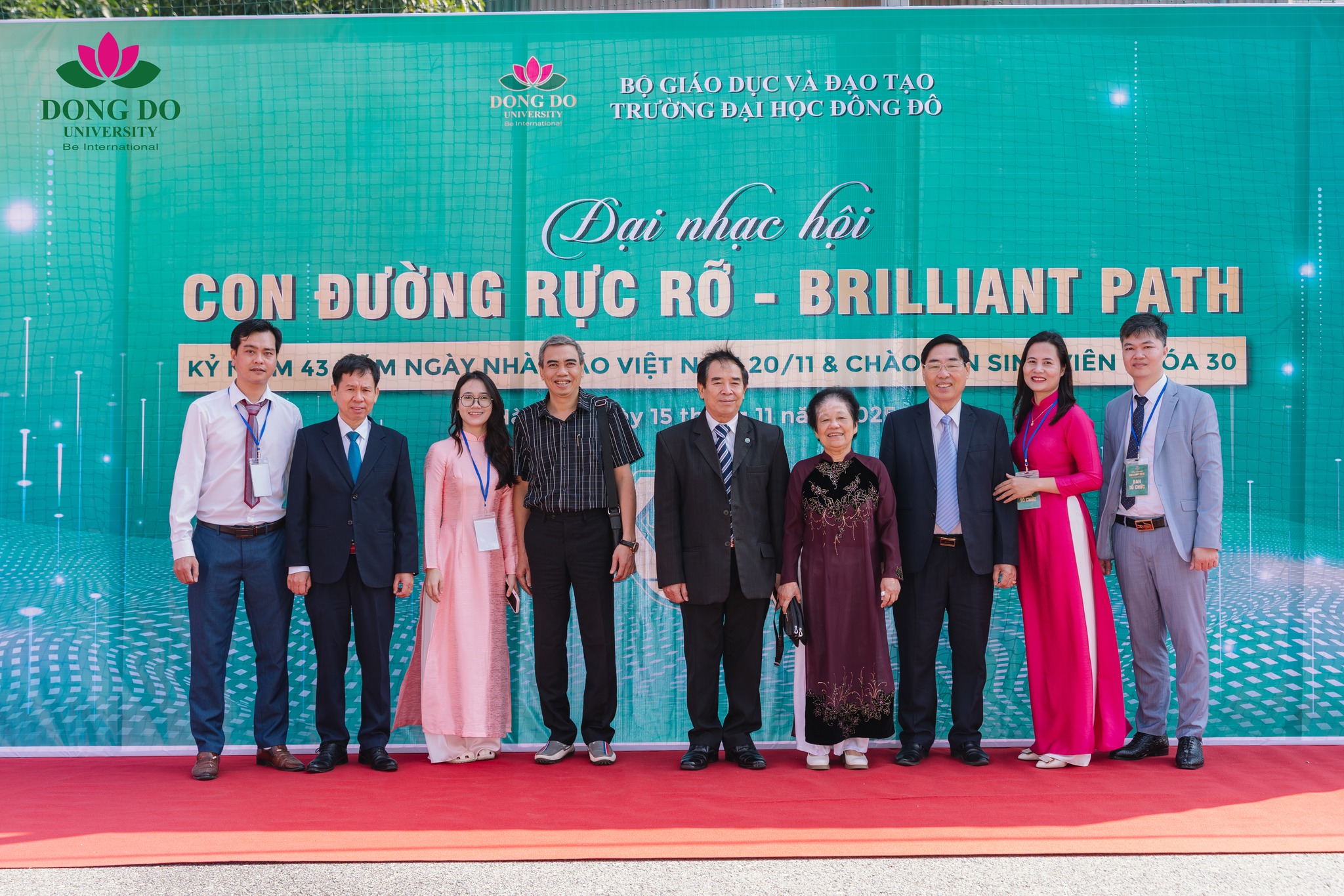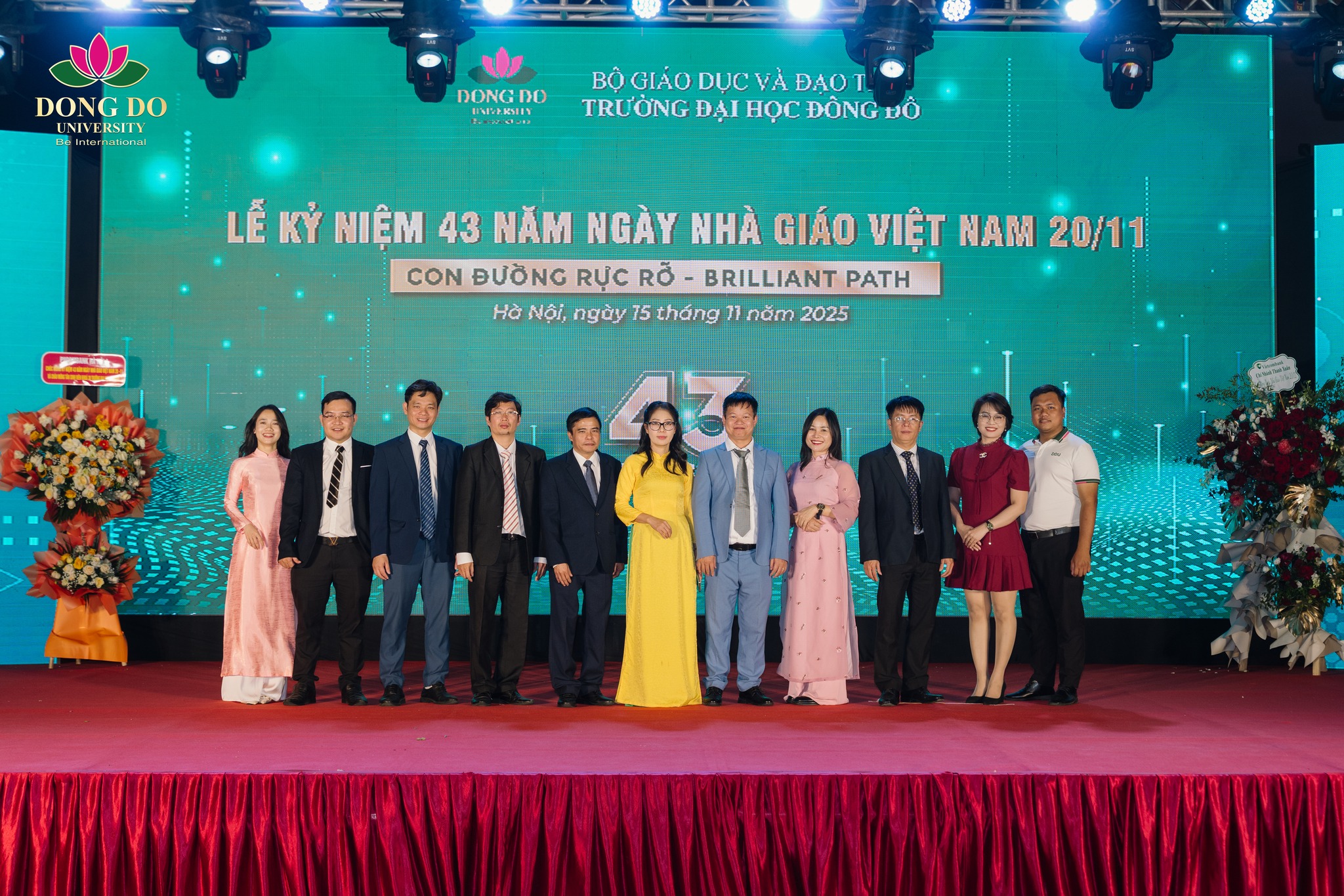Buổi lễ có sự tham dự của ThS. Trần Thị Hương - Đại diện nhà đầu tư, Phó Chủ tịch Hội đồng trường; ThS. Nguyễn Thế Sơn - Phó Chủ tịch Hội đồng trường, Phó Hiệu trưởng; Đồng Chí Hoàng Đức Hà - Phó Bí thư Đảng ủy, TS. Nguyễn Đình Tân - Phó Hiệu trưởng phụ trách trường; TS. Lê Thị Dung - Phó Hiệu trưởng; TS. Nguyễn Anh Tuấn - Phó Hiệu trưởng và ThS. Trần Khắc Hưng - Phó Hiệu trưởng cùng các quý thầy cô giảng viên các khoa, đại diện doanh nghiệp, đối tác chiến lược và đông đảo sinh viên toàn trường. Đặc biệt hơn cả, Nhà trường vinh dự đón tiếp hai thầy là những người sáng lập Trường Đại học Đông Đô – những nhân chứng của hành trình hình thành và phát triển suốt hơn ba thập kỷ của trường: GS.TSKH Trần Hữu Phát, Thành viên sáng lập, nguyên Chủ tịch Hội đồng Quản trị; GS.TS Phan Văn Hạp, Thành viên sáng lập, nguyên Hiệu trưởng. Sự hiện diện của hai thầy tại buổi lễ mang ý nghĩa biểu tượng, gợi nhắc về những giá trị nền tảng mà Nhà trường luôn kế thừa và phát huy.