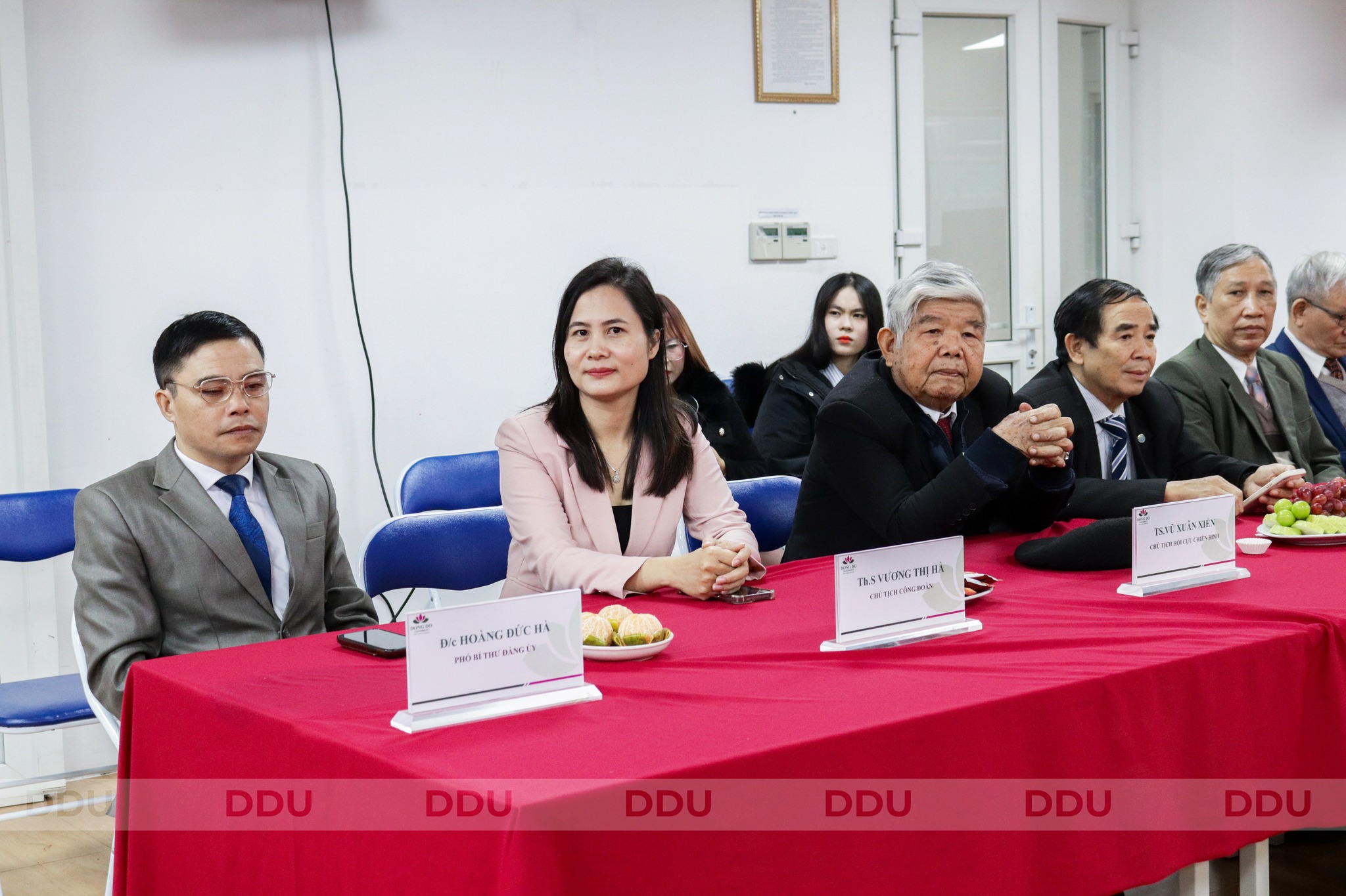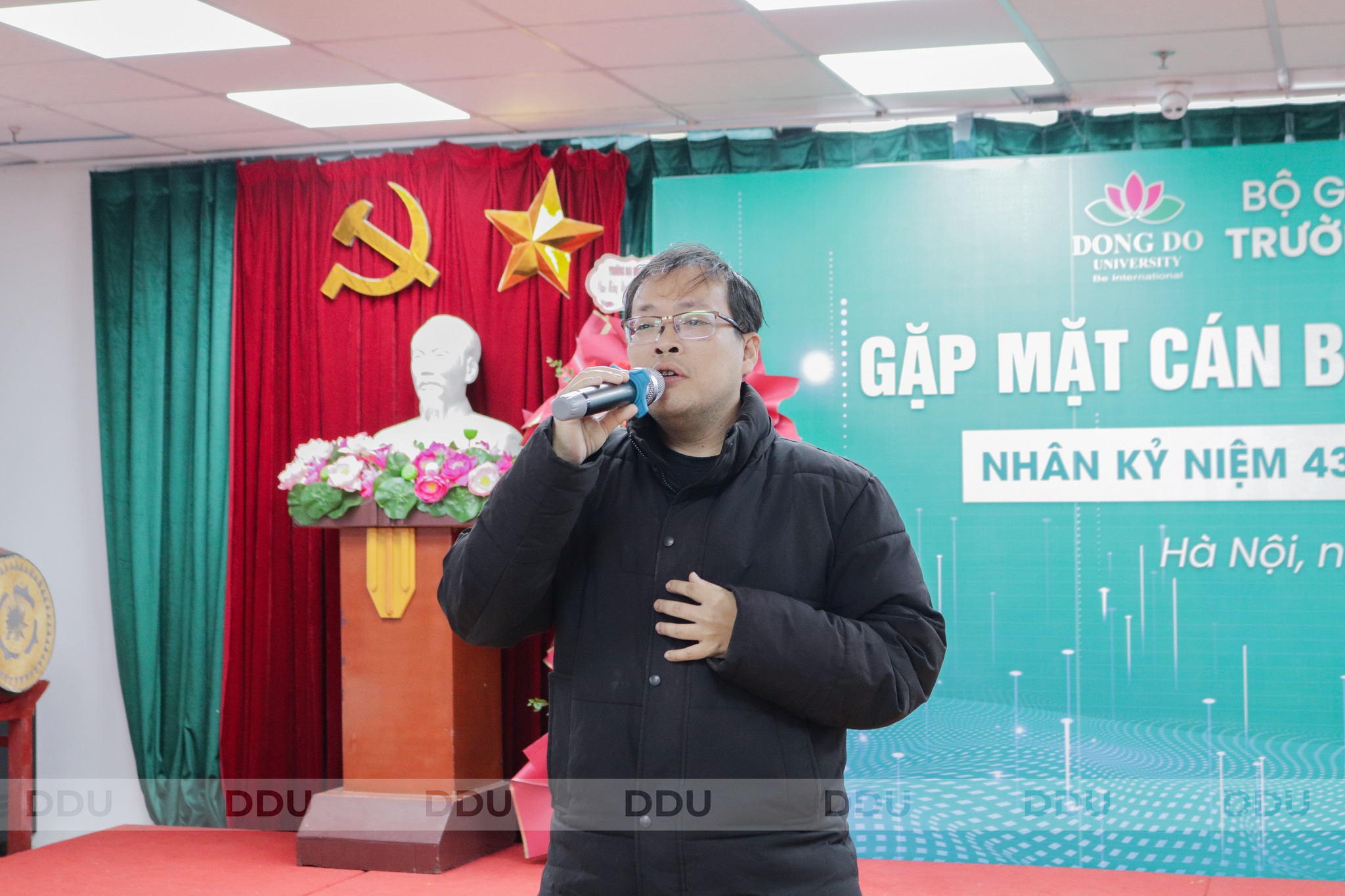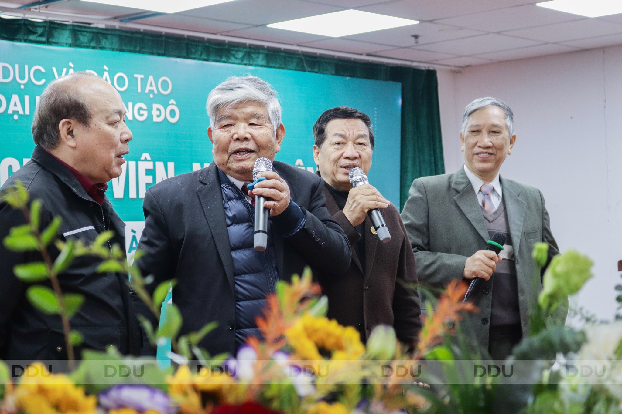 Tiếp đó, TS. Vũ Xuân Xiển – Chủ tịch Hội Cựu chiến binh, người đã gắn bó với Trường hơn hai, ba thập kỷ, đã chia sẻ đầy xúc động về những năm tháng cống hiến cho mái trường Đông Đô. Bên cạnh đó, Thầy Xiển đã dành tặng toàn thể hội trường những vần thơ mộc mạc, chân thành, nhưng thấm đượm tình yêu nghề và niềm tự hào về mái trường Đông Đô – như lời tri ân dịu dàng dành cho đồng nghiệp, cho nghề giáo và cho thế hệ học trò nối tiếp.