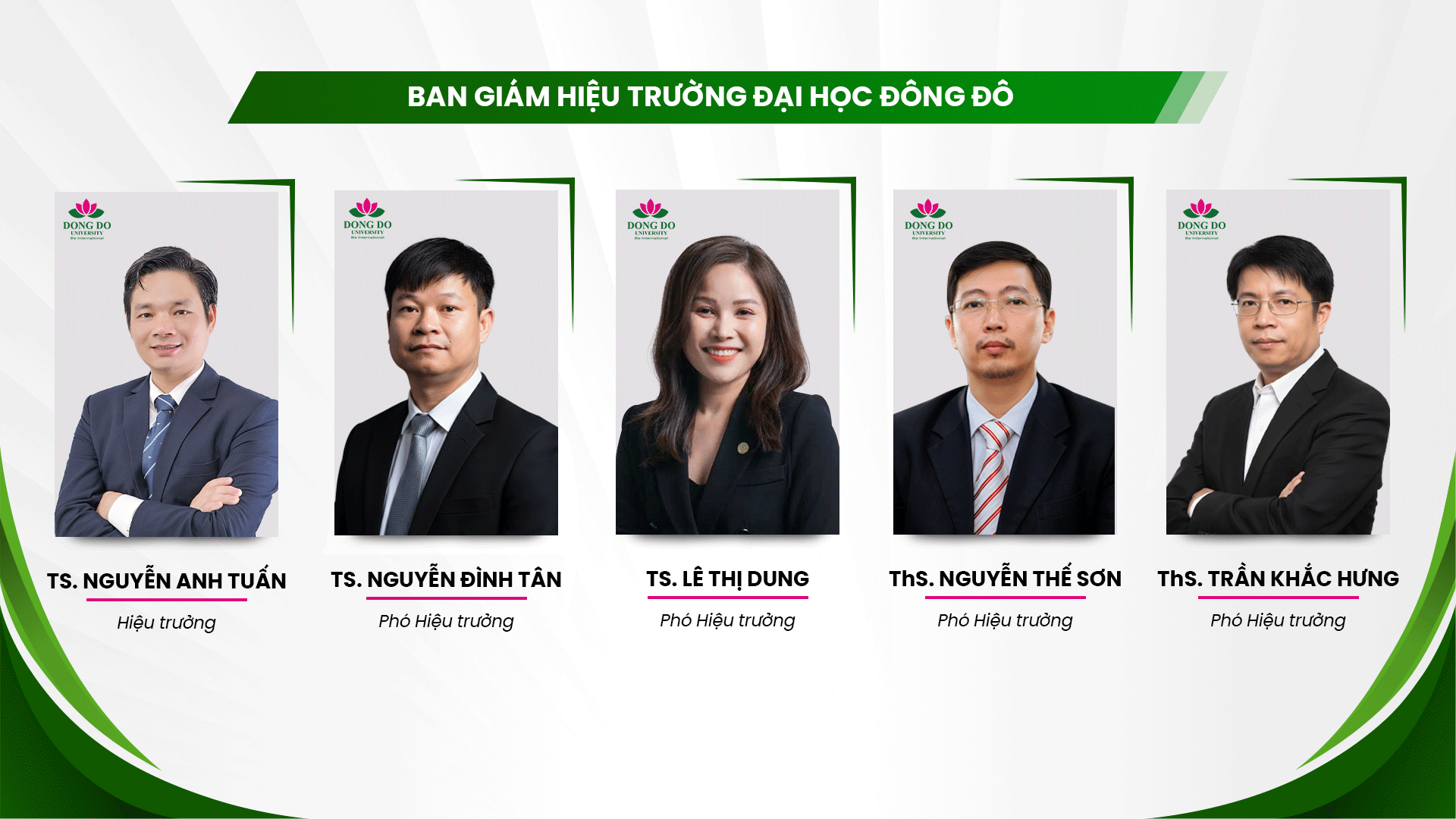 Với tinh thần “Trách nhiệm - Đổi mới - Hội nhập - Phát triển”, Ban Giám hiệu Trường Đại học Đông Đô luôn đoàn kết, chủ động, sáng tạo trong chỉ đạo, điều hành; không ngừng đổi mới phương thức quản trị đại học, nâng cao chất lượng đào tạo và nghiên cứu khoa học; hướng tới mục tiêu xây dựng Trường Đại học Đông Đô trở thành một cơ sở giáo dục đại học uy tín, hiện đại, hội nhập khu vực và quốc tế.