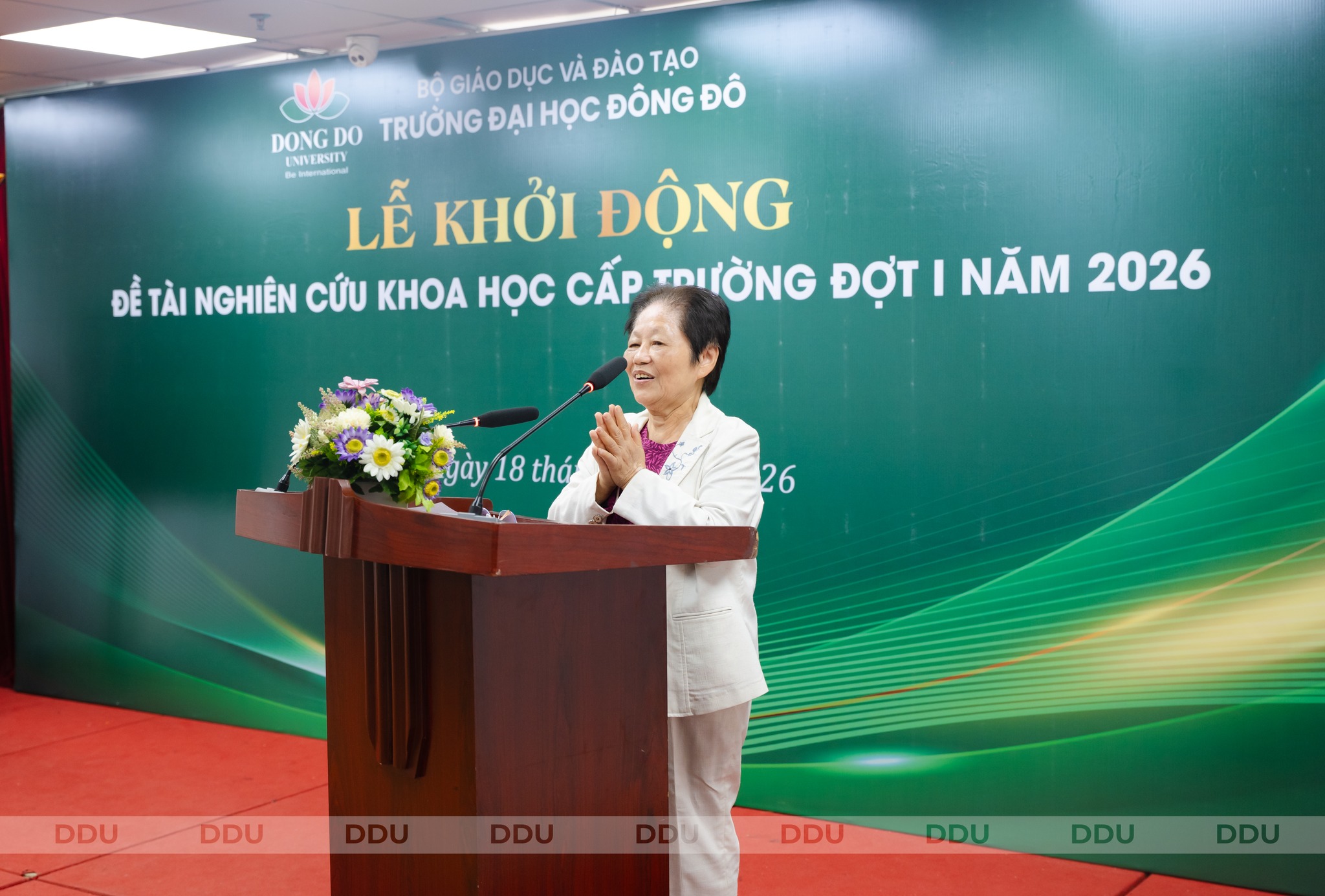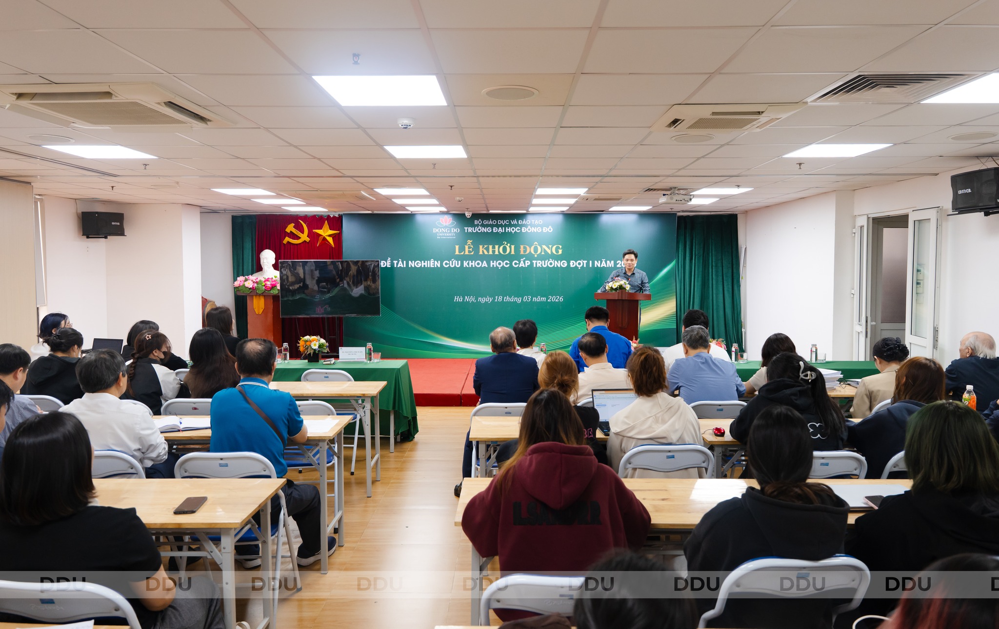 Chiều ngày 18/3/2026, Trường Đại học Đông Đô đã tổ chức thành công “Lễ khởi động đề tài nghiên cứu khoa học cấp trường đợt I năm 2026”. Sự kiện này không chỉ là dịp để đánh giá thành quả nghiên cứu khoa học của nhà trường trong năm qua, mà còn là bước đi quan trọng nhằm khởi động các dự án nghiên cứu mới, thúc đẩy phong trào nghiên cứu khoa học trong toàn thể cán bộ, giảng viên và sinh viên của trường.