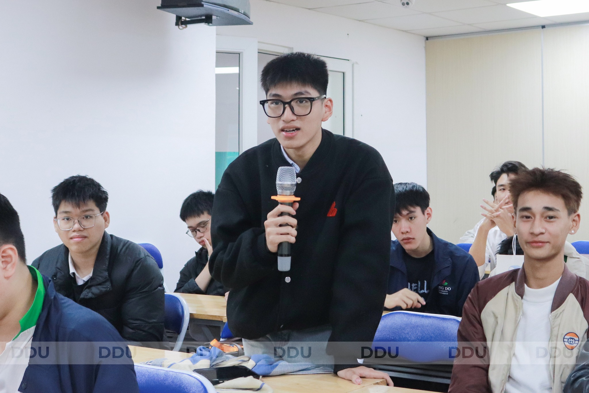 Tại diễn đàn, nhiều câu hỏi thực tế đã được các bạn sinh viên đặt ra xoay quanh chương trình học, hoạt động nghiên cứu khoa học, cũng như cơ hội thực tập – định hướng nghề nghiệp trong tương lai.