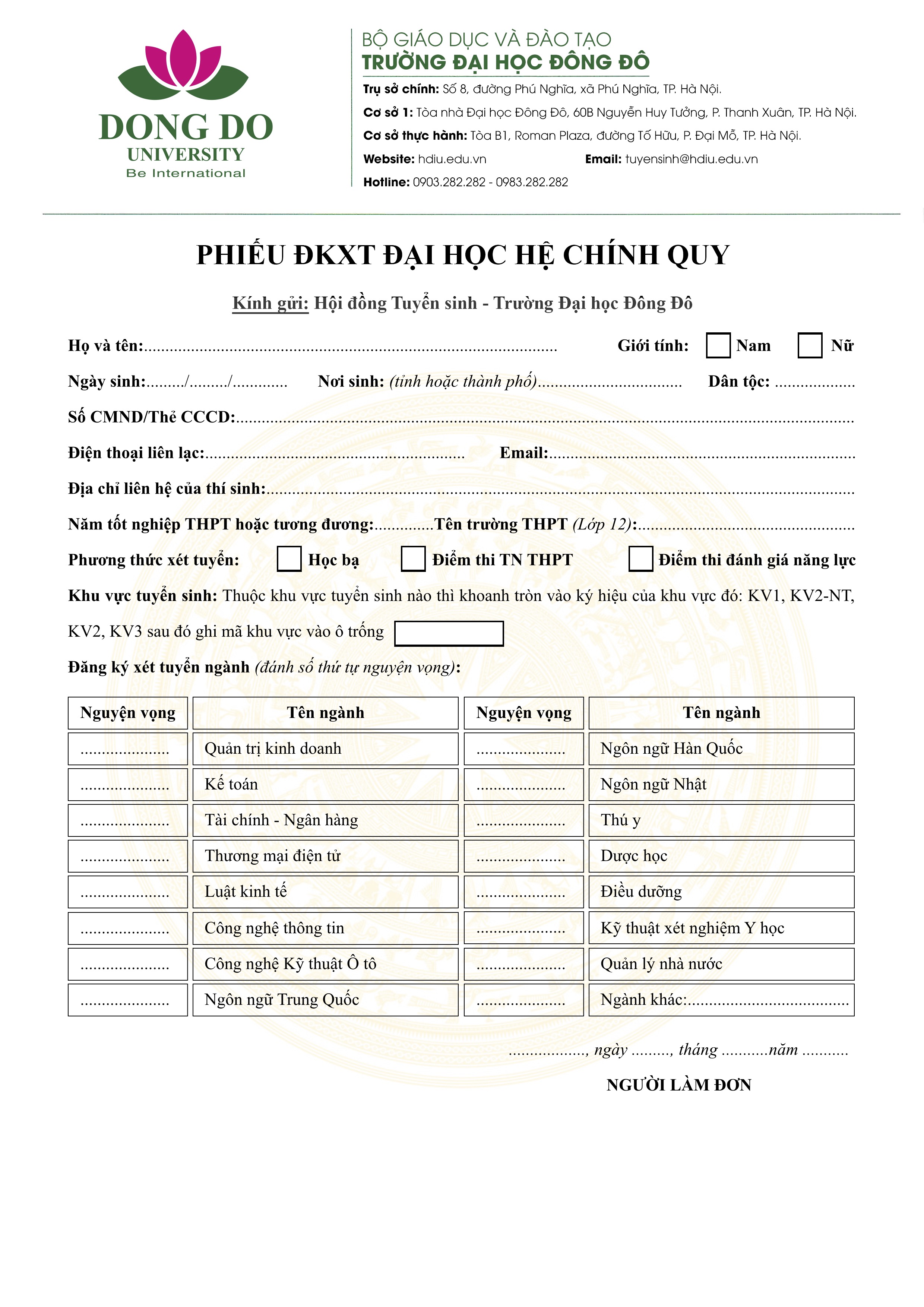 Zalo OA: Trường Đại học Đông Đô           Tel: 024 3771 9960 - 024 3771 9961          Hotline: 0983 282 282